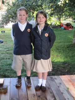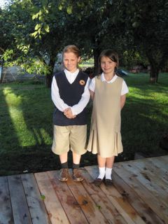 Uniforms were laid out. It was so fun to see how excited they were. This morning they were both up and ready early. Uniforms were pressed (yes, I ironed them) and a quick shower was taken. Jeff and I took them to school. The nerves set in.   You could tell they weren't too sure about the whole thing. Being the new kids in a really small school might be difficult. Luckily they are both laid back. Hopefully it will be a great day.