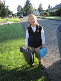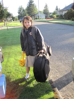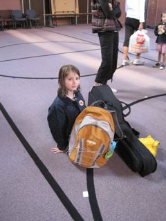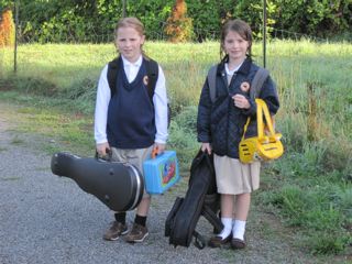 They were both really excited. Last night they got all their stuff together including the violin/guitar.