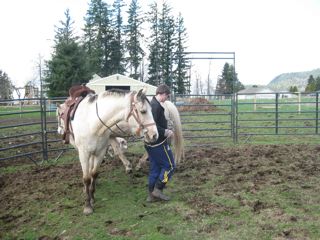 My friend Sue and her daughter Eli have been helping me train Bruny and Shasta. We started with horses that would run away if you tried to grab their halters. OK, they will still do that. They would run away and not come back. We left halters on them so we would be able to catch them. Anyway, before Hawaii, we were seeing a lot of progress. Then we went away. I wasn't sure how they would act once we got home. Well, they did great yesterday. Bruny went right into the round ring. Shasta wasn't so sure. I don't know if I have talked much about Shasta, but she is a wild mustang, or was. She was caught on the range. She is very skittish, but a super nice horse. As she is beginning to trust me, she is becoming less skittish. Bruny is her son. He is a spoiled boy and does everything his mom does. Before Hawaii, we had gotten a saddle on Shasta. She was trained previously, but it seems like she may have been treated roughly. Yesterday, we were able to get a saddle, and bridle on Bruny. This is a huge step. It is so nice to see great progress. After saddling Bruny, Shasta decided to come in too. She was then saddled too. It was really cool. Maybe we will have ridable horses.